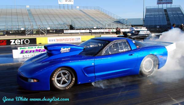 | Kenny Esner could not get the little blue Corvette into the field running a 4.76 best that got him the 20th spot. |