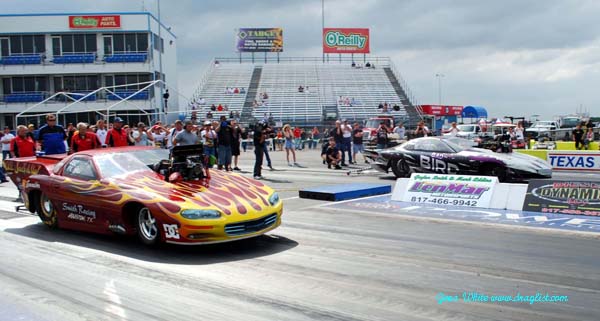 Six classes came together to battle wits and muscle to ultimately make a awesome show! The Texas Outlaw Pro Mod Association was one of the classes that came out to thrill and awe the fans. The crowd was kept on their toes because TOPMA provided the noise and thunder with the times to back them up!
