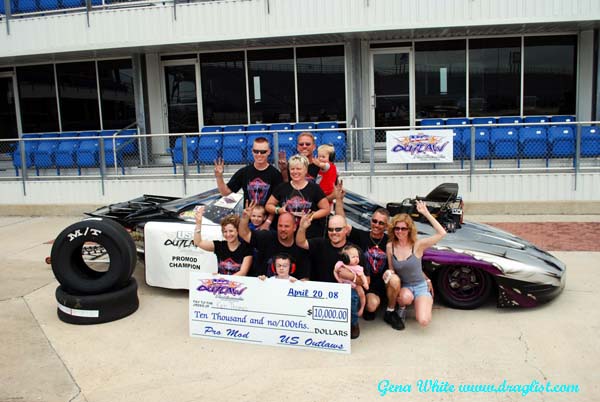 | The Thomas Motorsports crew in the US Outlaw Nationals victory circle. |