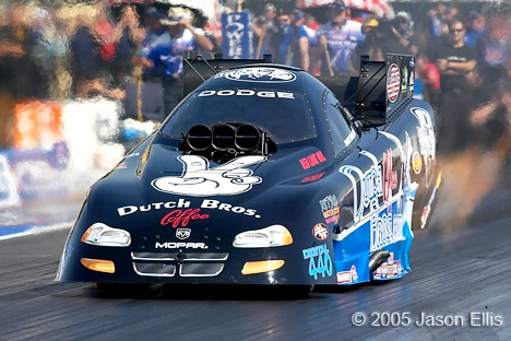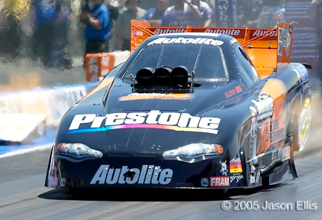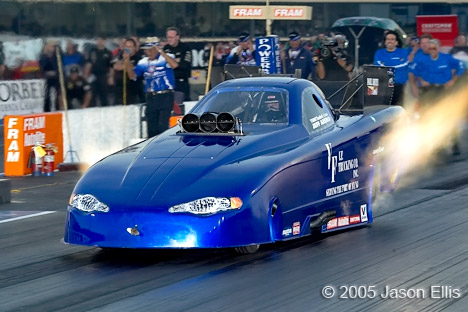 | Tony Pedregon qualified #1 and set a new track ET record with a 4.759 second pass at 321.12 mph. |