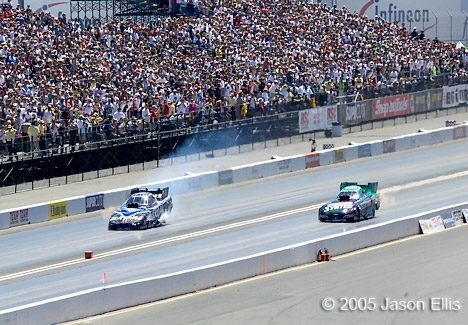 | Powerade points leader Robert Hight qualified #4 in Sonoma but was taken out in round one of eliminations by Phil Burkhart, Jr. in a very close race. |