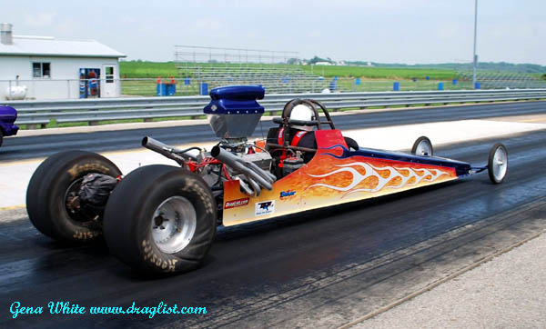 | Longtime Draglist.com pal Mark Worden ran great in the Roger Stanke blown alcohol dragster. |