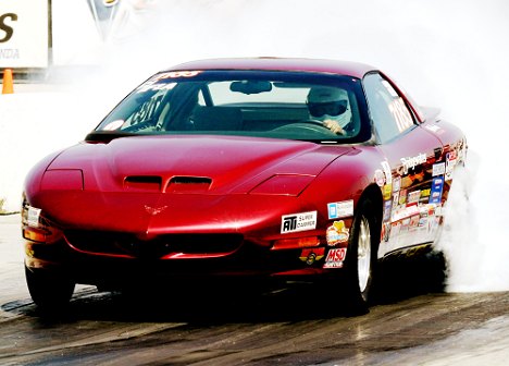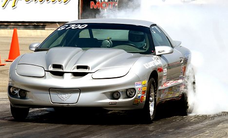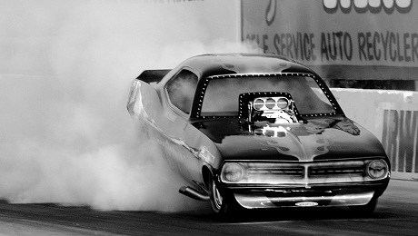 | Mr. Pammy doing a burnout in Jeff Gaynors Cuda; they broke the rear end on the launch |