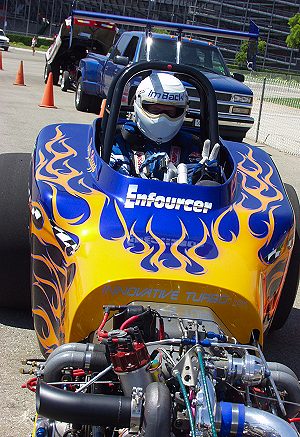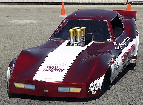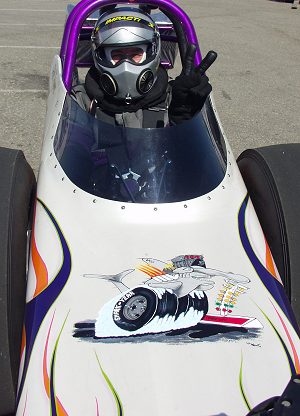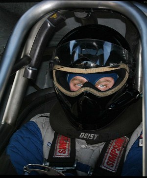 | Larry Scratch out testing one of his race cars |