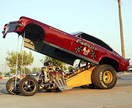 My most recent trip to Irwindale saw ground pounding nitro funny cars run on the 1/8 mile for the first time ever! Most of the guys and gals on this past Thursday night had never seen or witnessed nitro funny cars. But after Dan Horan, Jr. pulled on to the pad and did the first burn out by a funny car in this track’s history, the crowd went wild! Dale Pulde had the ‘65 Mustang thumping. On Dan's first pass, he laid down the quickest and fastest run in the track’s history at 4.15 seconds and a new track record speed of 176 mph. If Horan's flopper had not had front disc brakes, he would have not been able to get the ‘Stang slowed down in time and would have gone into the net! Check out www.irwindalespeedway.com for more info. The track is open every Thursday at 4:00 p.m. Runs begin at 5:00 p.m. Cars with open headers can make runs until 8:30 p.m. and muffled cars can run until 11:00 p.m.