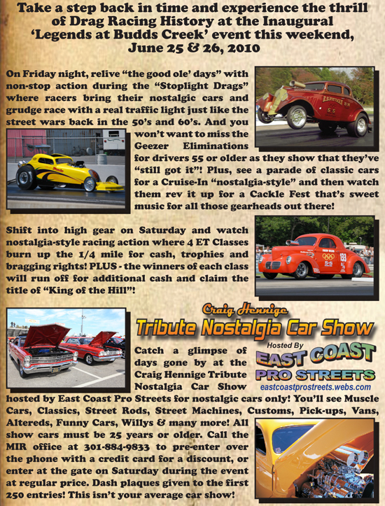 FRIDAY and SATURDAY: Inaugural Legends at Budds Creek Nostalgia Event