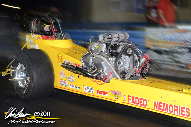 The second stop on the 2011 Texas Blown Fuel tour brought the series to North Star Dragway in Denton, Texas, for a night of heads up, all blown nostalgia drag racing under clear skies and with excellent weather conditions. The TBFA brought it's largest field to date with twelve blown machines on the property, a feat in itself given the tough economy and declining car counts across the board in the sport of drag racing this year.