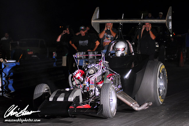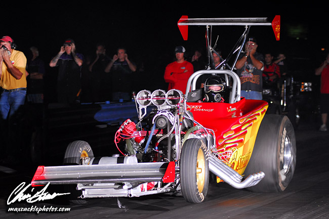 Just before midnight, the final round pair fired up for the last drag race of the night. Jones, in his third straight final, while Trussell and company were looking for icing on the cake after a career best evening. Jones blazed the hides on the burnout and as he came to a stop the car lost fire, Jones accidentally tripping the kill switch while putting the car into reverse. Jones climbed out and watched as Trussell staged and blew the tires off immediately, then got back in it and took the win with a 5.51 at 93 mph.