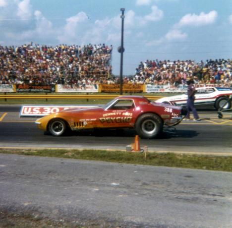 Notes: In late 1972, Ditmars put Herb Moller behind the wheel of the Opel so he could drive this new 109-inch rear-engine injected Chevy Vega Funny Car. The "Boss Brute" was a wild handler, and though Ditmars squeezed a best of 7.40/191 out of it, he crashed it at Indianapolis Raceway Park about three weeks before the 1972 US Nationals. Ditmars got back in the seat of the Opel and finished a contracted schedule of dates through early 1973, then retired. - Racer site |