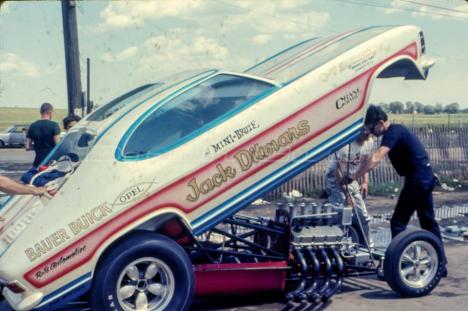 Notes: AKA Der Mini Brute. In late 1972, Ditmars put Herb Moller behind the wheel of the Opel so he could drive a new 109-inch rear-engine injected Chevy Vega Funny Car. The car was a wild handler, and though Ditmars squeezed a best of 7.40/191 out of it, he crashed it at Indianapolis Raceway Park about three weeks before the 1972 US Nationals. Ditmars got back in the seat of the Opel and finished a contracted schedule of dates through early 1973, then retired. - Racer site |