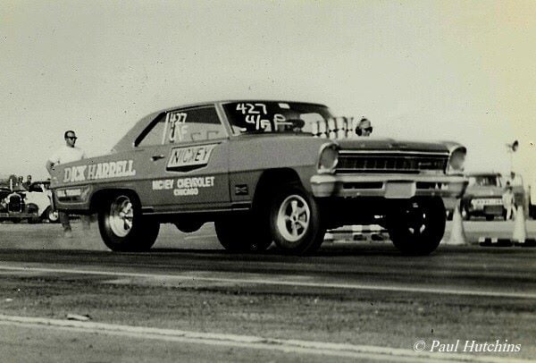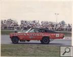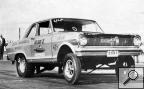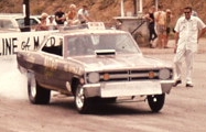Notes: Injected fuel. This was the car Bob Harrop received and used for S/S class eliminations at the 1965 Nationals, and began converting to match race trim sometime in late 1965. He may have raced it while doing the engine setback conversion work on his 1965 Amblewagon-built AWB Dodge. That car crashed in its rebuilt debut at Cecil County in the spring of 1966, and Harrop bought the former Ramchargers AWB Dodge to finish the season. According to the magazine caption, fellow Mopar driver Ken Montgomery is driving the car here at Atco late in the '65 season. Disposition of this 1965 A990-code Dodge is unknown. Aditional wheelbase mods are also unknown. |