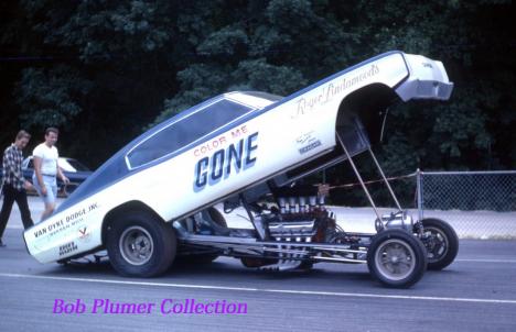 Notes: Injected. The car's best time was a 9.60. - Ron Howard | According to Jim, this car ran a 426 hemi despite 427 on front fenders. - RH |