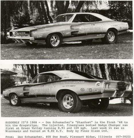 Notes: Hayden Proffitt was one the great racers of the 1960s. Proffitt won may races in Super Stock with a Chevrolet 409, then jumped to a Ford when they gave him a Comet A/FX. Proffitt built a Corvair funny car in 1966. The car began with a top, but it was removed after the car wanted to lift at speeds. Les Shockley was tapped to help drive the car in '66. |
