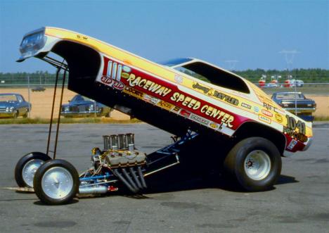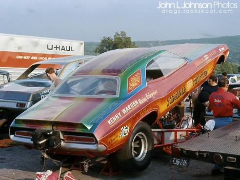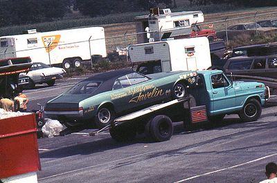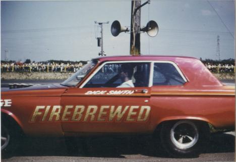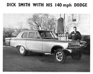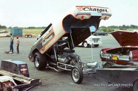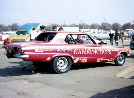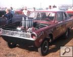 Notes: This photo represents car after paint job in 1965. Was run through 1968 by Snow. In 1966, T-Bar stretched the car, added 1966 nose. Car was sold to Mike Brown in 1968, and eventually run by the Richardson family as a bracket car in the 1970s. (Drag Racing USA 3/71) |