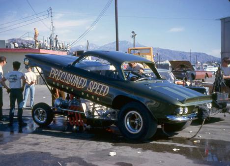 Notes: Confirm fuel. Ran on gas (B/A I think) and won Competition Eliminator at '68 Winternationals - last of 3 wins ('66 Indy Comp, '67 Indy Super, were the others) for this car. We need to get times for this. Replaced by '68 flip-top Dart on nitro (I.D.: 5894). - Bill McLauchlan |