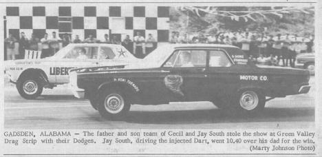 Notes: Fuel-injected. His son, Jay C. South, normally drove. They ran the car through 1967. Was sold to Marion Fairchild in 1968. | AKA Corrupter's Pup. Dallas GA 1965 (12/10/65 Drag World) |