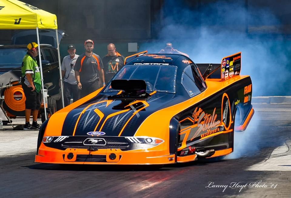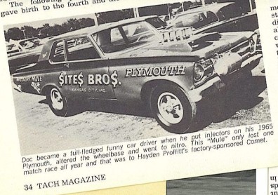 Notes: Having purchased and raced the Don Gay's "Infinity" '67 GTO and campaigned it as Blue Bandit II, Stokes then purchased Gay's '68 Firebird funny as well. Again, a late hemi supplanted Poncho power. - RT |