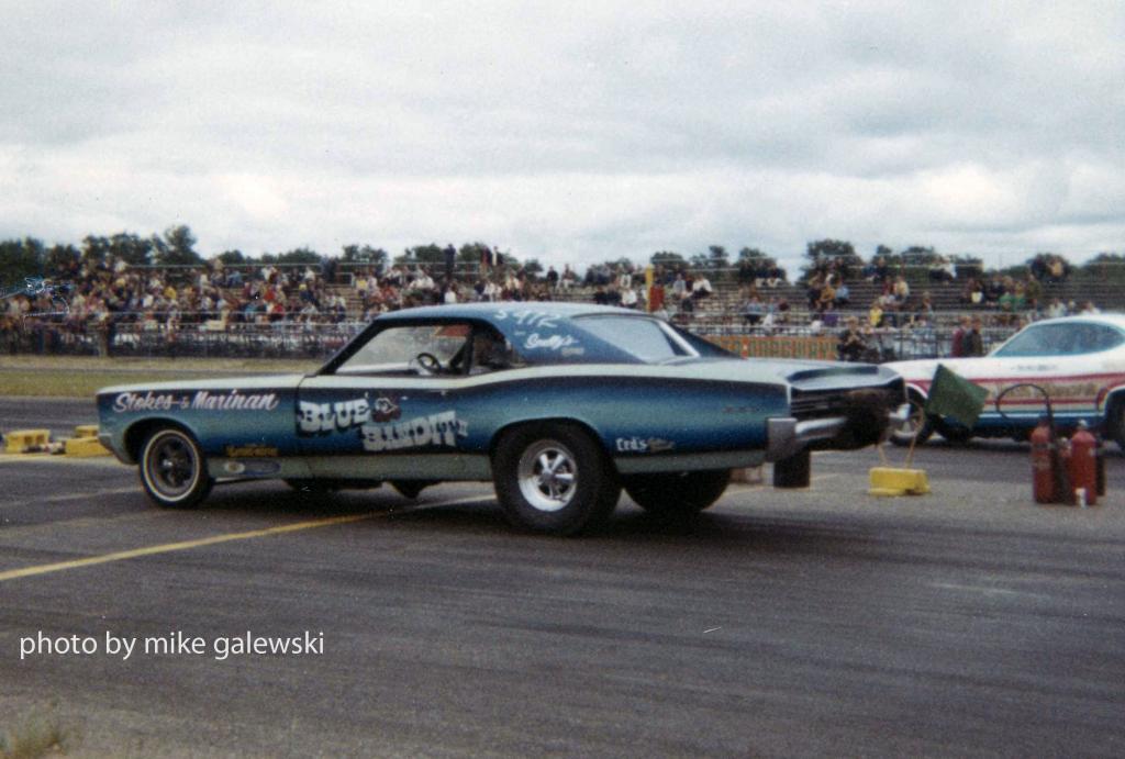 Notes: The former Don Gay "Infinity" GTO. Stokes & Marinan stretched the front end and plunked in an injected late hemi. The car was a popular fixture on the Upper Midwest funny car circuit. Complete car less engine/trans could be had for $2,200 or best offer per classified "for sale" ad in a March 8/1969 issue of Drag News. Best times of 8.5/163.0 were as cited in the ad; "Infinity" lineage confirmed by owner Stokes there as well. Original car is said in online forums to have been located, with a planned restoration to the Blue Bandit configuration. - RT |