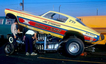Notes: A Romeo Palamides-constructed, rear-engine entry commissioned after Stokes' mini-Charger was totalled in an accident. The Duster hit the wall on its initial US 30 (Gary, IN) outing. The body was replaced, but there were no subsequent runs. The car was reportedly stored and sold five years later. |