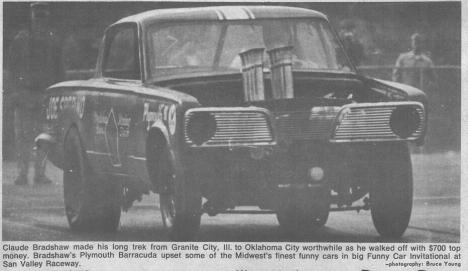 Notes: Injected fuel AWB. Car was run in 1967, too. (10/28/66 Drag World).rnWebsite:https://bradshawbros.wixsite.com/bradshawbros |
