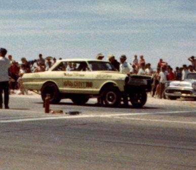 Notes: Piloted by original NASA Mercury 7 astronaut Gordon Cooper. One time event? Match racer was run at NASCAR (as S, US), AHRA and NHRA strips. Hilborn-injected hemi, Torqueflite trans. |
