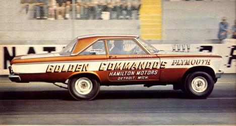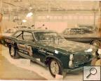 Notes: Delorean received one of the four 427 SOHC-powered factory A/FXers produced in 1965. The others went to Nicholson, Beswick and Proffitt. Aditional cars were built and furnished with the tried-and-true 427 Hi-Riser mill, with some of these converting to Cammer power later in the season. Reported to have run Hilborn-injected on fuel later in the season, but this picture seems to show a carbureted racecar. - RT |