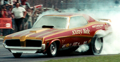 Notes: On March 6, Paul Smith drove the car at the IHRA Winternationals at Lakeland. He lost to Fritz Callier in the first round. Not sure who was driving it on April 30 at Rockingham for the IHRA Pro-Am Championships, but in the first round, the Cougar lost to Richard Tharp in the "Blue Max." This car had a Ford SOHC at some point. |