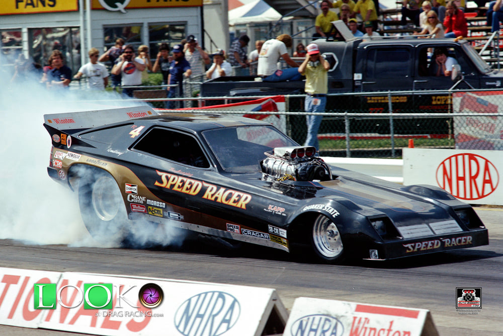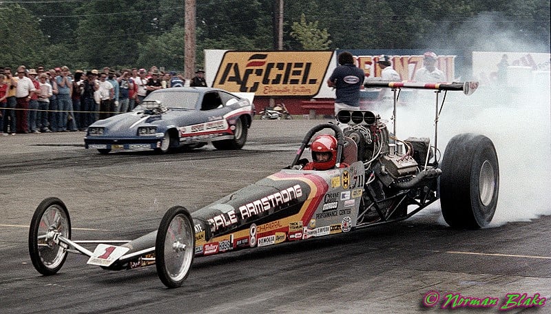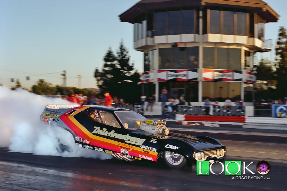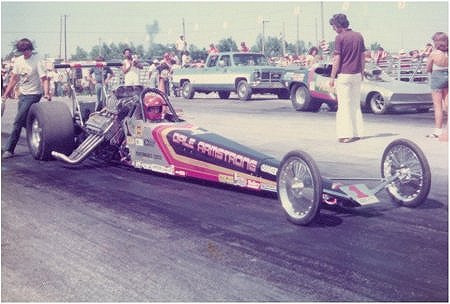 Notes: Possibly the baddest BB/FC in history. Armstrong became the first to break the 6.7, 6.6, and 6.5-second barriers in 1975. Set Low ET of 6.56 at OCIR Manufacturers' Funny Car Championship in November 1975. Photo from the 1975 NHRA Springnationals, National Trail Raceway, Columbus, Ohio. After this run, the BB/FC records were retired in March 1976. The 6.50s were not seen again until 1979. - TN | Set National Record 6.72 in Sacramento. Won the NHRA World Finals over Ken Veney, who redlighted in the final. |