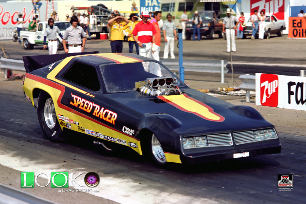Notes: The funny car headers looked pretty cool. Low qualifier at IHRA Bristol 1976 at 6.85/205.01. Low ET and Top Speed at NHRA Indy at 6.65/209.30. Dale was runner-up to Dave Settles when he fouled away a 6.71/209.30 in the final. Did the AA/DA go 6.47 as well or is this the famous funny car time? |