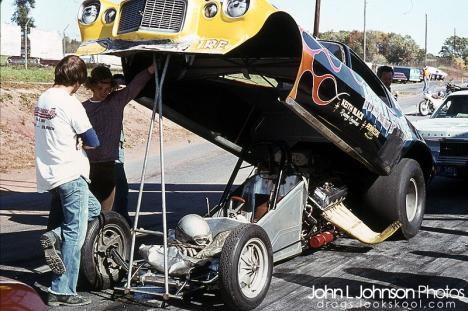 Notes: Used the Fred Forkner car to replace Mustang, which burned. The car went from the Castronovo Bros. To Nichols & Oxner to Fred Forkner to Lew Arrington to Tom Stephens & Rick Stambaugh. Raced at NHRA Gainesville, but did not qualify (7.374/201.34). That was the team's only NHRA national event appearance. |