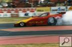 Notes: In the Fall of 1971, photojournalist Jon Asher made initial runs at Orange County International Raceway in an attempt to obtain his NHRA fuel funny car license. At OCIR, he made a couple of half-track shots and a pair of timed runs an 8.71/175.78 and an 8.09/183.29. More runs would need to be made, and plans for attempts in California in early 1972 were tentatively set. The California runs never materialized, and it was decided to make the passes in March at Gainesville Raceway after the completion of the Gatornationals. Jon made three runs at Gainesville, an abbreviated run where Jon's fire boot got caught under the throttle pedal, a good straight as a string pass of 7.47/192.70, and an engine exploding, on fire pass of 8.92/82.94. Fuel funny car drivers Gary Henderson (Super Duster) and Cecil Lankford (Brand-X), along with track manager Terry Earwood signed for Jon's license. Jon also agreed that before he made any runs in competition, he would make some additional passes to get within the NHRA required National Record plus ten percent rule, which required a new licensee to make a full pass within ten percent of the current National Record. Two different articles about Jon's experiences were published in Super Stock & Drag Illustrated, "Update: Driving A Funny Car" March 1972 and "It's On Fire" July 1972. |