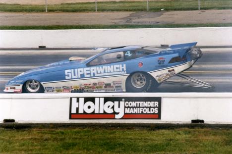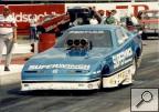 Notes: Former Ormsby former Prestige Gunite express. Jim Hawkins' DragStats lists a best for Tommy of 4.991 at 278.63 in 1991. Did Tommy run a 4.964 in the IHRA this year? Photo from Indy 1990. |