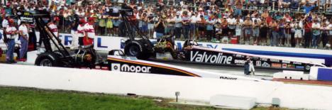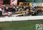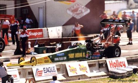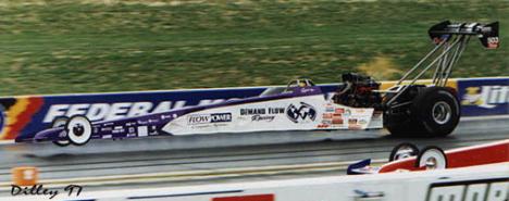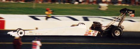 Notes: Former Ormsby former Prestige Gunite express. Jim Hawkins' DragStats lists a best for Tommy of 4.991 at 278.63 in 1991. Did Tommy run a 4.964 in the IHRA this year? Photo from Indy 1990. |