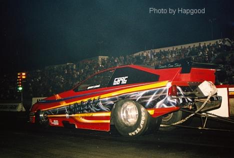 Notes: Ben ran a Pro Stock T-Bird that Ed Horton built from '84 until he crashed the car at Greer Dragway, SC, in '88. Faced with no car for the upcoming '89 season, he had a '70 Pinto in his garage that he had run from '73-'83. It had sat unused, so Ben dropped the 672 engine out of the T-Bird and went to Darlington for the IHRA Winternationals. He entered the Pinto in the Top Sportsman class and ran a 7.85/175.78. |