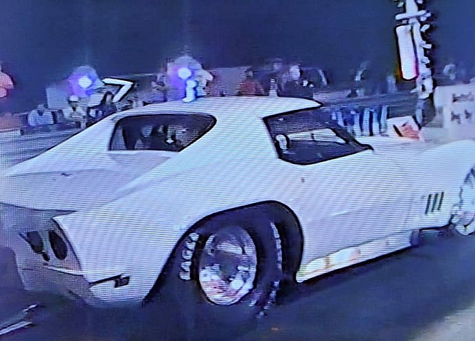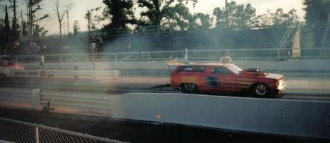 Notes: Earnest Jones at Winston County Dragstrip in the early 90s, running a true-bodied vette with a Small Block Chevy with about 80% nitro and stack injection - Devin Smith |