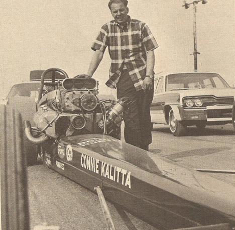 Notes: Kalitta's '68 season was nothing like his winning season of '67. He ran well, setting track records, but the big wins eluded him. At Pomona for the NHRA Winternationals, the race he won the previous year, he was hard pressed to qualify. 80 cars attempted to make the 32-car field and Conrad's 7.21/217.90 qualified #27. In the first round, a 7.46/218.96 beat Ray Ayres' 7.46/222. He advanced past round two with an 8.01 when Mike Snively fouled against him in the "Hawaiian." But in round three, his 7.23/219.50 lost to Ron Rolstad's 7.20/222. Early in March, he was at OCIR for the PDA Championships. This was a crazy 64-car show. Once again, he lasted until the third round before spinning a bearing and losing to Kenny Safford. Surprisingly, he did not make the trek to Famoso for the Bakersfield March Meet (he didn't in '67 either). In May, Kalitta was at Pittsburgh for the Eastern Fuel Championship Meet. He set a track record 7.10, but lost to Vic Brown driving the "Creitz & Greer" car in the first round. At Englishtown for the NHRA Springnationals, Kalitta was embarrassed when his best of 7.13 failed to make the sixteen-car field. Connie did set both ends of Tri-City, Saginaw, records at 7.06/226.21. On July 27, he had a best of three match race with Snively at York US 30. Kalitta won the first race with a 7.21/212.26 when Mike fouled. In the second race, it was Connie's turn to red light and his 7.34/206.88 lost to the "Hawaiian's" 7.24. Connie won the match with a 6.89 in the third race. Back at Pittsburgh later in '68, he again set the track record, this time with a 7.02. On August 28, Kalitta debuted a new lightweight Logghe built car at Cecil County for the Mr. USA Fuel Meet. He was having trouble getting the dragster to launch straight. In the first round, he faced John Mulligan. Connie gambled on the tree and lost, fouling away a 7.42. John ran 7.14 for the win. After he failed to qualify at the Springnationals, it was nice to make the field easily at the US Nationals. His 6.97/215.30 qualified #19 for the 32-car show. A first-round 7.36/212.76 advanced past Mulligan, but in round two he fouled against Bennie Osborn. - Ron Howard |