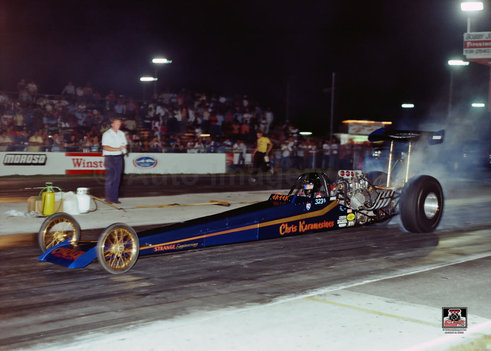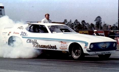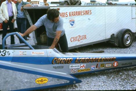 Notes: Karamesines was at Fremont for its East/West meet early in the year. While he didn't reach the final, he set Low ET at 5.85 in a field that included Don Garlits and Jerry Ruth. In May, he was at Tulsa for the AHRA Springnationals. He qualified second behind Garlits and just ahead of Shirley Muldowney. He lasted until the final, where he finished runner-up to "Big Daddy." In June, he also raced at St. Louis for the AHRA Gateway Nationals, but his 6.79/207.38 in the opening round fell to Fred Snavely's 6.73/192. Chris did not race at any NHRA national events this year. |