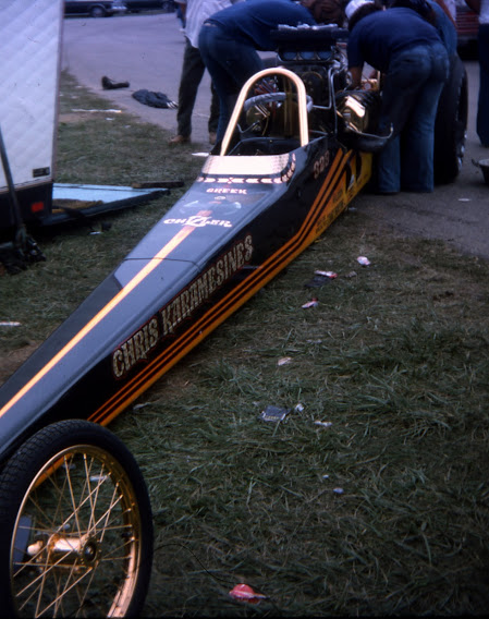 Notes: Photo from 1977 US Nationals. Chris attempted to qualify for the NHRA Springnationals at Columbus, but his 6.20 best failed to make the show. |