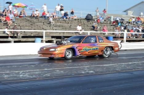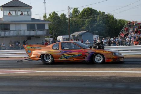 Notes: Trying extreme 10.5. Mary Baltzell was for a short while the fastest racer on 10.5 slicks. Baltzell had tried the slicks at the Las Vegas PSCA race and waited for the first round of qualifying to run. Baltzell ran a 4.385 at 164 that held up for the number two spot. She beat Larry Webb in the first round 4.75 to 6.16. Baltzell fell to Rodney Rosential in the semi finals with a 4.48 to the Opel's 4.37. - Danny White |
