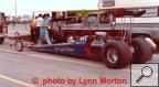 Notes: Dale made the long trip to Pomona for the NHRA Winternationals, where he had problems and did not make a single complete pass during qualifying. He also was a DNQ at Gainesville (times unavailable but slower than 6.96). He was in Atlanta in March for an eight-car show. Traction was hit or miss, as it only took a 7.48 to qualify. With that being said, Dale's 7.62 failed to make the field. He was not alone as he had good company as Raymond Beadle and Kenny Bernstein also failed to beat the 7.48 "bump." Dale returned to Atlanta for the Southern Nationals in April, where he was the eighth alternate at 6.869/175.09. He was the 13th alternate at Englishtown (times unavailable) and Indy, with a respectable season-best of 6.160/233.16 with tuning help from Sid Waterman and Bill Flurer. That was Dale's last NHRA national event of the year. Photo from 1983 US Nationals. | Dale Barlet was an FTQ at the '83 Winters in an old Citation, fired up in the pits after the initial rain-out. There was a beer stand by the pit entrance. They went 6.17 at Indy once Bill Fleurer matched the uneven rod lengths. (ND) - Joe Moore |