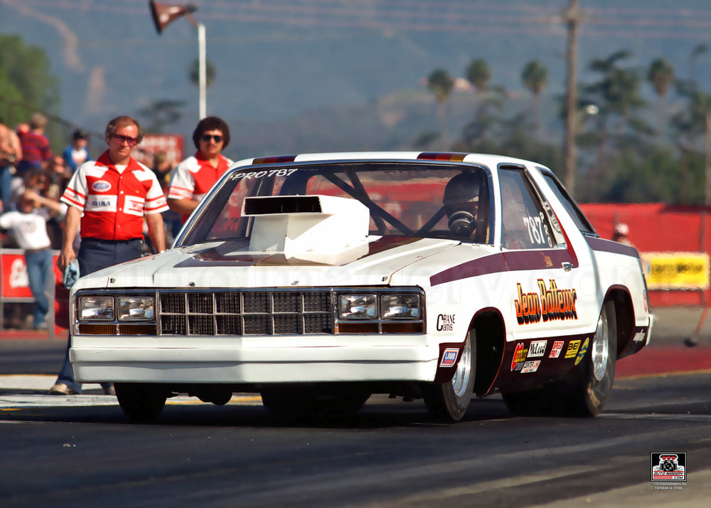 Notes: Jean raced at three national events: the Pomona Winters, Indy, and the Pomona Finals. He did not qualify at each. The best NHRA national event times were from Indy, with a 7.853/170.58. Photo from 1986 US Nationals, IRP. Original pre-Internet draglist entry. Listed times from The Drag Racing List, December 86/January 87, Volume 1, Number 9. |