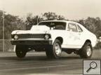 Notes: Rollie Lindblad built this chassis for Ken Riehle; originally planned to be a fuel altered, hence the wheelbase. Ken Riehle owned: the Riehle and Mayo Nova (Former CKC car), the Hellfire Camaro (r/e Camaro, driven by Lew Arrington), and was partners with Kosty Ivanof for a while (you can find many photos of the Vega with Ken's name on them). Ken was talked out of the chassis somehow by Willie Hardie, a journeyman Top Fuel racer who beat Garlits once back in the day. Hardie built the Vega you see here, originally sponsored by D&D speed centers; they had a bunch of cars with matching American flag-themed paint jobs, including the Love American Style Vega panel wagon modified production car. The first time I ever went down a race track in anything was in the tow vehicle for this Vega on a very cold day at Connecticut Dragway. The car was later sold/given/? to Bob Beaulieu (the Jazz jet cars et al.) and run as Lil America BB/FC, a notoriously ill-handling car. It was kind of like a shopping cart with a blower. I have no idea where it went from Bob's garage. So there you have it. Regards, William Horton |