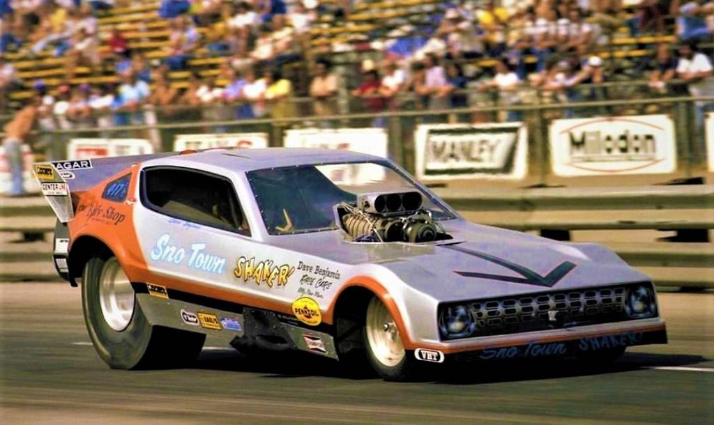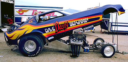 Notes: Dave built the car. He was severely burned at Ontario and missed the 1979 season. | Benjamin tells the story online of his fire and severe burns at the '78 Finals, caused by Nelson's stock, unbalanced, crank with a crack in it. No raffles or Benefit events, he said. He was at the '89 Funny Car Opener at SIR. The backs of his arms looked like medium-cooked bacon. - Joe Moore |