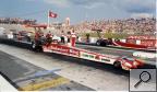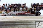 Notes: Bernstein was one of the first FC racers o transport his car with an eighteen-wheeler. The Peterbilt also carried two spare engines as he entered the '79 season with four Ed Pink 1/2 strokers. Kenny failed to qualify at Pomona for the NHRA Winternationals. He did much better on February 18 for Beeline's NHRA Division 7 Opener. He qualified for the eight-car show and lasted until the final, where he finished runner-up to Tripp Shumake. He then went to the Bakersfield March Meet, where he easily won his first-round race. In the second round, he ran 6.55/216.34 to beat a tire-shaking Shumake. The car got out of shape in the semifinal, and Kenny shut off to 9.53 in a loss to Jim Adolph's 6.29. At the NHRA Gatornationals, he qualified #8 with a 6.33/229.59, but he got crossed up again and lost to Al Segrini in the first round. The following week (March 18), Kenny was at Darlington for the IHRA Winternationals. He qualified #2 in the eight-car show with a 6.17 but failed to reach the finals. On April 22, he won the IHRA Dixie Nationals in Atlanta by stopping Dale Pulde in the final. The NHRA Cajun Nationals at Baton Rouge was postponed by rain and run on May 2. It was here that Kenny got his first NHRA National event victory. He qualified #3 in the eight-car show with a 6.32/231.95. In round one, he beat Bob Pickett's 6.55/222 with a 6.36/234.98 (Top Speed). In the semifinals, a 6.49/202.55 beat Ron Colson's tire-smoking "Hawaiian." The final saw Kenny face future superstar John Force, and Force had his transmission break giving Kenny the victory with a 6.45/233.76. Bernstein was at Rockingham for the IHRA Pro-Am Championships. A 6.17 qualified #2 in the eight-car field, and in the first round, his 6.19/232.55 beat a tire-smoking Pulde, but in the semifinals, Paul Smith in the "Entertainer" got a jump on him, and his 6.39/226 beat Kenny's quicker 6.31/230.76. He qualified #8 at the NHRA Springnationals with a 6.20/233.76 but lost to Force's 6.27/220 in the first round with a 6.36/229.00. At the IHRA Springnationals at Bristol, he again ran well. A 6.24 qualified #3 in the eight-car field. A 6.34 in the first round beat Smith's 6.61, and in the semifinals, his 6.57 beat John Pott's 6.95 in the "Mr. Norm" car. That put him in the final with Pulde. Unfortunately, Bernstein took a nap in the final, and his 6.31/223.88 finished runner-up to Dale's 6.47/234. At Denver for the NHRA Mile High Nationals, he qualified #1 with a 6.35, but in the first round, he fouled against Pulde. The NHRA Summernationals was Kenny's next stop, and he qualified #6 there with a 6.20/238.09. A first-round 6.28 lost to Shumake's 6.23. He was in another final round the following week (July 22) at the IHRA Northern Nationals. A 6.15 qualified #2 for the eight-car show, and he worked his way into the final against Tim Grose. His 6.35/222.22 finished second best to Grose's 6.23/211. Bernstein followed the NHRA tour to Canada in early August for the Grandnationals. He qualified #6 in the eight-car field with a 6.28/234.37. He improved to a 6.25 in the first round, but it wasn't enough as he lost to Segrini's 6.19. Kenny failed to qualify at Martin, Michigan, for the PHR Championships. All cars ran one round, and the eight lowest ETs advanced into the show regardless of winning or losing. He was runner-up to Billy Meyer at the NHRA Division 4 race at Baton Rouge. His final round 6.47/226.13 lost to Meyer's 6.41/232. At Indy, Kenny's 6.108/231.36 qualified #13 for the NHRA U.S. Nationals. In the opening round, his 6.120/241.93 lost to Ron Colson's 6.06/236 in the "Hawaiian." The Indy times were Kenny's best of the year. He followed that up with a big win at Rockingham for the IHRA U.S. Open Championships, where he stopped Roy Harris in the final. The following week, he was in Seattle for the NHRA Fallnationals. A 6.27/227.84 qualified #12. In round one, he improved to 6.24/238.09 but lost to Jim Dunn's 6.10/238. |