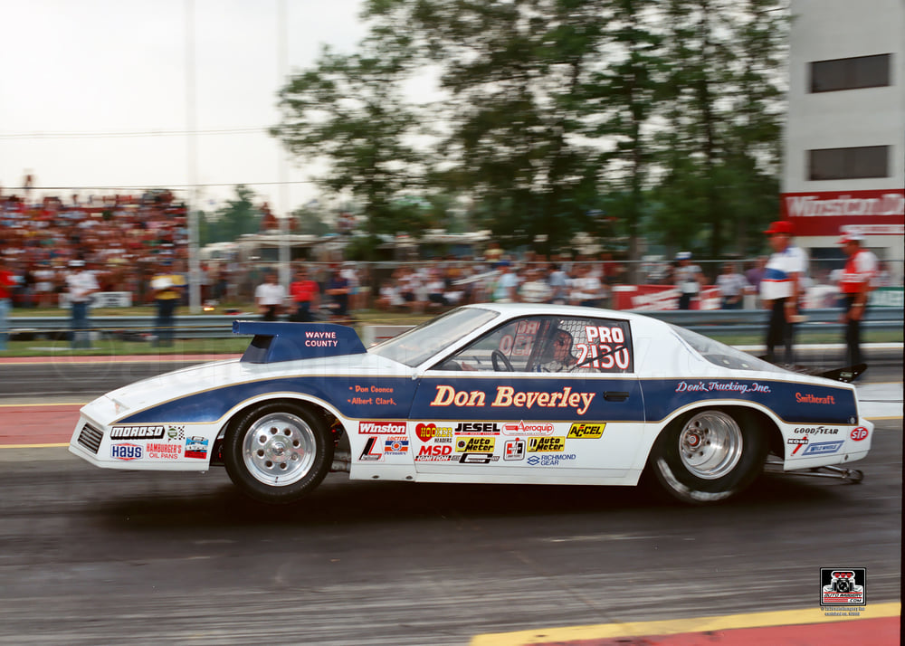 Notes: Rick Howard photo from 1992 NHRA SpringNats, Columbus, Ohio. (Qualified 3rd at 7.28/190.15. Defeated Alban Gauthier in round one, with improved 7.26/190.63, but lost to Larry Morgan in round two). | Don qualified #11 at Pomona for the NHRA Winternationals with a 7.27/191.61. He picked up to a 7.24/192.47 to beat Rickie Smith in the first round, but in round two, Bob Glidden pulled a holeshot, and his 7.33/189 beat Beverley's quicker 7.29/190.59. At the NHRA Arizona Nationals, he qualified #10 with a 7.30/190.71. A first-round 7.28/190.51 beat Jerry Haas and in round two, a quick off-the-line 7.36/189.71 beat Larry Morgan's quicker 7.32/188. In the semifinals, he beat Jim Yates with a 7.33/190.63, putting him in the finals against Jerry Eckman. Jerry had been running about a tenth quicker, and in the final, Beverley had problems and shut off to 7.77/137.95, while Eckman got the victory with a 7.26/190. The next stop was at Houston for the NHRA Supernationals. Don qualified #9 with a 7.21/192.84. Unfortunately, he fouled against Yates in the first round. He really improved his qualifying at the NHRA Gatornationals, where he ran 7.16/194.09 for the #4 spot in the field. But once again, he lost early, this time to Lewis Worden in the first round. Don qualified #7 at Rockingham for the NHRA Winston Invitational with a 7.24/191.61. He improved to a 7.22/191.93 in his first-round win over Mark Pawuk, while in round two, a 7.26/191.28 took out Scott Geoffrion's 7.31/189. He lost a close race to Warren Johnson in the semifinals when his 7.24/191.44 lost to WJ's 7.22/192. The next stop on the NHRA tour was Atlanta for the Southern Nationals. Beverley got his second National event win and his first since '86. He qualified #3 for the show with a 7.23/192.43 and ran 7.25/191.57 over Joe LePone Jr. in the first round. A second-round 7.21/191.24 beat Smith, and another 7.21 at 191.44 in the semifinals beat Pawuk. In the final, he ran Geoffrion. Scott shut off with problems while Don motored to a 7.20/191.49 for the victory. It was then off to Memphis for the NHRA Mid-South Nationals, where he qualified #2 with a 7.25/191.00. He was still riding high after the win at Atlanta but was humbled in the first round, when he lost to Lucinda McFarlin. Don dropped off to a 7.44/191.12 that lost to her 7.34/188.95. |