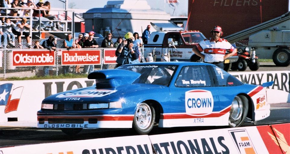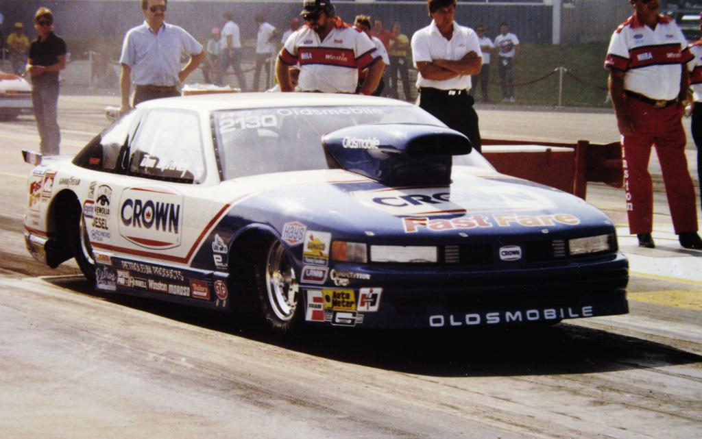 Notes: Beverley was at Pomona for the NHRA Winternationals, where he qualified #9. In the first round, he lost to Mark Pawuk. At Firebird Raceway for the NHRA Arizona Nationals, he qualified well and then ran 7.37/186.68 in the opening round of eliminations to beat Steve Schmidt's 7.48/185. In the second round, his 7.51/185.56 lost to Tony Christian's 7.37/186. Houston was the next stop on the NHRA calendar for the Supernationals. Don ran 7.30 to qualify #9, and in round one, he beat Joe Lepone. He improved to 7.28/185.63 in round two to stop Jim Yates' 7.32/187, and he ran an even better 7.27/187.77 in the semifinal, but it wasn't enough to get around Scott Geoffrion's 7.23/189. After running so well, it was surprising to see his name among the non-qualifiers at Gainesville for the NHRA Gatornationals. He did much better at Rockingham for the NHRA Winston Invitational, where his 7.29/188.63 qualified #12. In the opening round, an off-pace 7.40/187.11 lost to Bob Glidden's 7.33/188. He just got into the show at Atlanta for the NHRA Southern Nationals. His 7.38/186.78 got him the #15 spot in the field. Unfortunately, he lost to Geoffrion in the first round. | Rick Howard photo from 1991 NHRA Springnats, Columbus, Ohio. (Qualified on the bump spot at 7.39/185.60 but lost round one to Darrell Alderman. The photo is of my son, William, getting picked out of the crowd to help unload the car from the trailer. William grew up to become an Army Staff Sgt, currently recruiting, did three tours in Iraq, and was with the lead group during 'Thunder Run' in 2003.) |