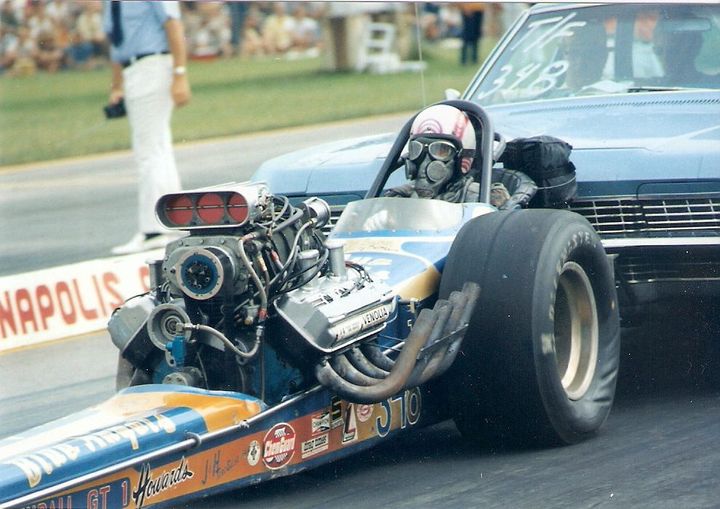 Notes: Biggins took Top Fuel Eliminator at the Irwindale Grand Prix, setting a track record ET of 6.74, per the 10/16/70 ND. -- RT | Blue Angels were a car club from Massillon. A gentleman by the name of Ralph Henson was the engine man. Ralph was a mechanic at Progressive Chevrolet. Gary Biggins was the driver, and he drove up to the 1970 World Finals. When the club disbanded, Stan Bowman bought the car. - Tom Schiltz |