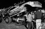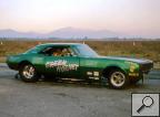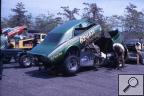 Notes: Car built 1968. Two-piece body with a tilt front end. Ran as Camaro primarily in 1968, switched to Firebird front end in 1969. Lost car on Jersey Turnpike in October of 1969 when the trailer hitch broke. At the Connecticut Memorial Day Championships on June 1, Charlie Allen's 7.99/150 beat Joe's out of shape-10.87/158.75 in the first round. Joe raced at the New England Funny Car Championships at Epping on June 8. He beat Frank Federici's 7.89/182 in the first round, with a holeshot, 7.94/177. Roger Lindamood's 7.86 beat him in round two. Still, in June, he ran an eight-car show at New York National, but a first-round 8.86/164.53 lost to Dick Harrell's 7.72/174. On June 28, he faced off against Jim Liberman for a best two out of three match race at Great Meadows, NJ. Joe fouled away a 7.87/185.18 in the first round, to Jim's 8.19/179. Unfortunately, the Firebird broke and could not run anymore that day, giving Liberman the match race victory. |
