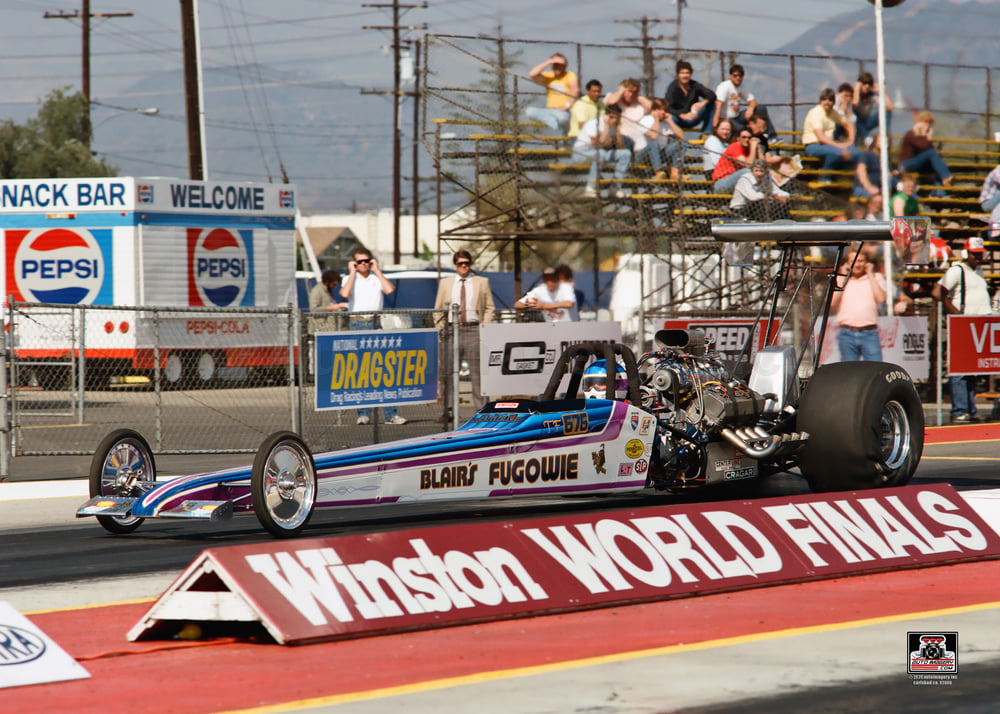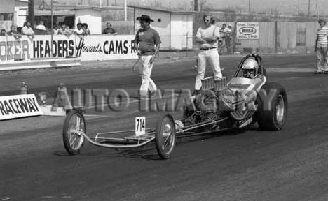 Notes: Butch Blair crashed his Fugowie dragster in the lights in Saturday's final qualifying session at the 1998 Bakersfield March Meet. - John Drummond |