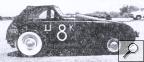 Notes: West and Bloom's first try at turning this '47 Crosley into a drag race car was disappointing. They used the rear half of a straight Buick 8, making it a four-cylinder "power" plant. When they could only eke 75 mph out of it, they swapped the little motor out for a 1940 Buick Century. They also moved the driver from the front seat to the rear seat to accommodate the bigger motor. This change really improved their results: 104.34 mph. Photo: "Just curious (Phx. Hist.), p. 16, in Jalopy Journal, The H.A.M.B. -- MB |